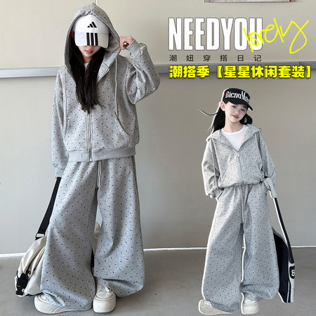 1*2下载视频“2026春款2601款星星印花连帽套装”