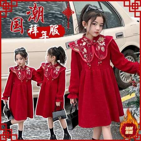 1*2下载视频“冬款2409款刺绣假两件年服裙”