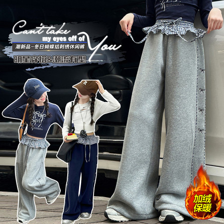 1*6收藏“冬款2560款刺绣蝴蝶加绒阔腿裤”