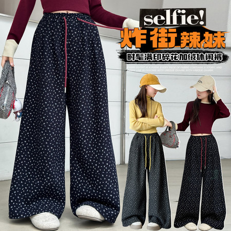 1*2收藏“冬款2576款碎花加绒阔腿裤”