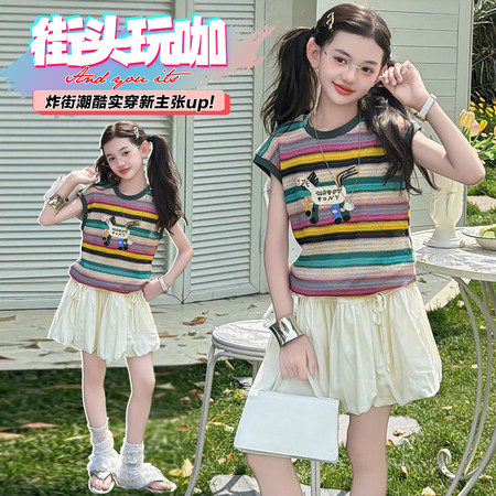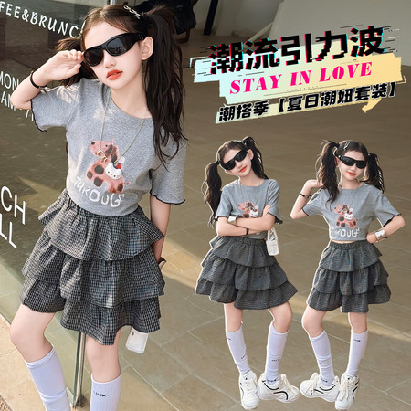 1*4下载“夏2603款卡通T恤格子裙套装”图片包