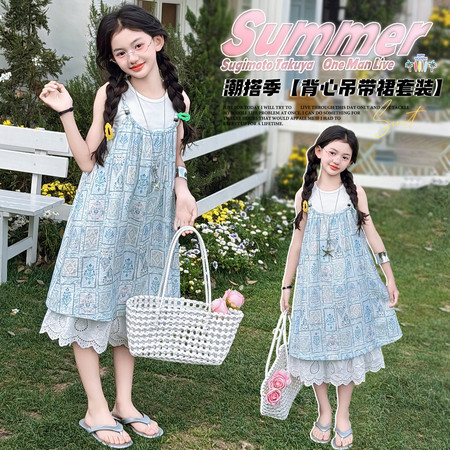 1*4收藏“夏2608款背心吊带两件套花边裙”